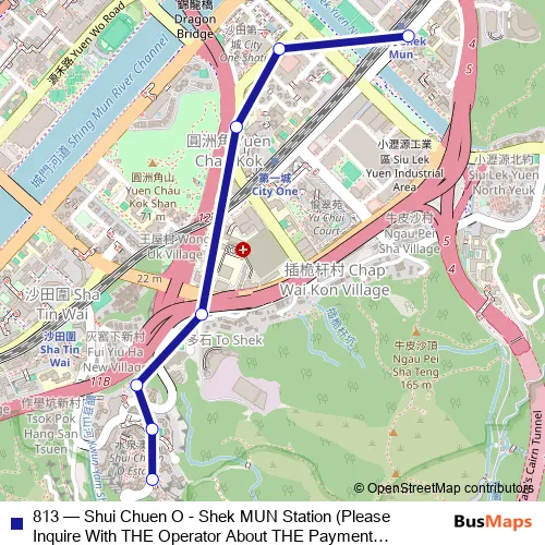 Bus 813 - Shui Chuen O - Shek MUN Station (Please Inquire With THE Operator About THE Payment Arrangement OF THE TWO-WAY Fare ON This Route.): Full Schedule in Sha Tin