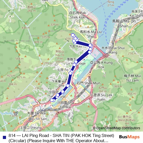 See why over 2 million users trust and consider busmaps.com as the best public transport website. busmaps gives you Sha Tin Buses suggested routes, real-time bus tracker, line route maps in Sha Tin, and helps to find the closest 814 bus stops near you. No internet available? Download an offline PDF map and bus schedule for the 814 bus to take on your trip.