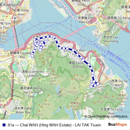 See why over 2 million users trust and consider busmaps.com as the best public transport website. busmaps gives you Hong Kong Buses suggested routes, real-time bus tracker, line route maps in Hong Kong, and helps to find the closest 81a bus stops near you. No internet available? Download an offline PDF map and bus schedule for the 81a bus to take on your trip.