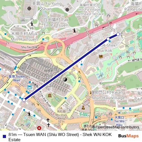 Click here to view the nearest 81m - Tsuen WAN (Shiu WO Street) - Shek WAI KOK Estate bus stop.