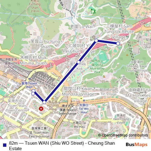 Click here to view the nearest 82m - Tsuen WAN (Shiu WO Street) - Cheung Shan Estate bus stop.