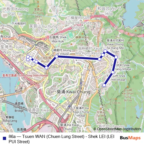 Bus 86a - Tsuen WAN (Chuen Lung Street) - Shek LEI (LEI PUI Street) Schedule in Tsuen Wan