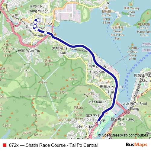 Click here to view the nearest 872x - Shatin Race Course - Tai Po Central bus stop.