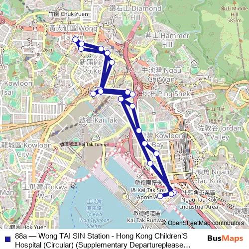 Bus 88a - Wong TAI SIN Station - Hong Kong Children’S Hospital (Circular) (Supplementary Departureplease Inquire With THE Operator About THE Payment Arrangement OF THE TWO-WAY Fare ON This Route.) Schedule in Wong Tai Sin