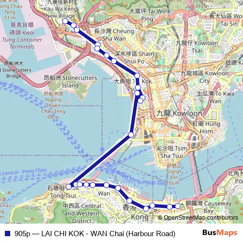 Bus 905p - LAI CHI KOK - WAN Chai (Harbour Road) Schedule in Central