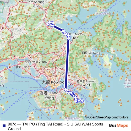 See why over 2 million users trust and consider busmaps.com as the best public transport website. busmaps gives you Tai Po Buses suggested routes, real-time bus tracker, line route maps in Tai Po, and helps to find the closest 907d bus stops near you. No internet available? Download an offline PDF map and bus schedule for the 907d bus to take on your trip.