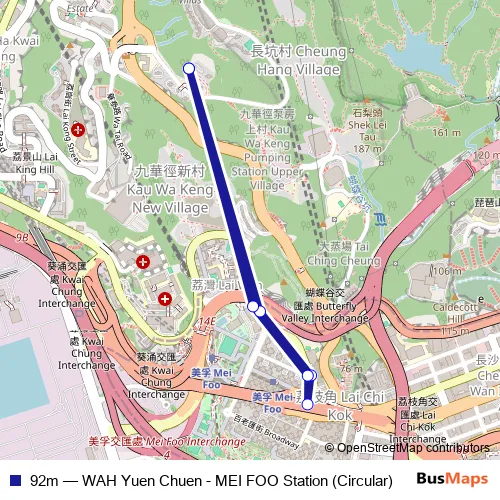 Click here to view the nearest 92m - WAH Yuen Chuen - MEI FOO Station (Circular) bus stop.