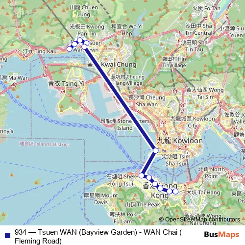 See why over 2 million users trust and consider busmaps.com as the best public transport website. busmaps gives you Tsuen Wan Buses suggested routes, real-time bus tracker, line route maps in Tsuen Wan, and helps to find the closest 934 bus stops near you. No internet available? Download an offline PDF map and bus schedule for the 934 bus to take on your trip.