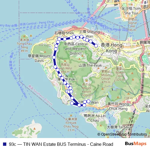 Caritas Centre, Caine Road. 93c (TIN WAN Estate BUS Terminus - Caine Road) is operational during on weekdays.