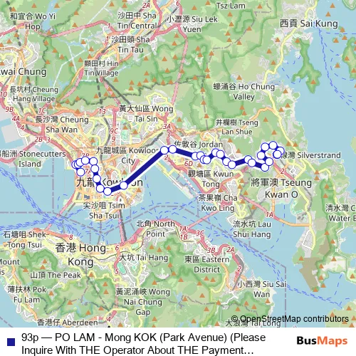 Bus 93p - PO LAM - Mong KOK (Park Avenue) (Please Inquire With THE Operator About THE Payment Arrangement OF THE TWO-WAY Fare ON This Route.) in Kwun Tong: Stops & Timetable