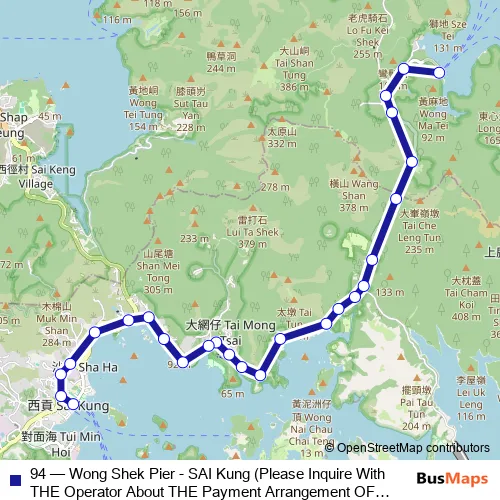 Click here to view the nearest 94 - Wong Shek Pier - SAI Kung (Please Inquire With THE Operator About THE Payment Arrangement OF THE TWO-WAY Fare ON This Route.) bus stop.