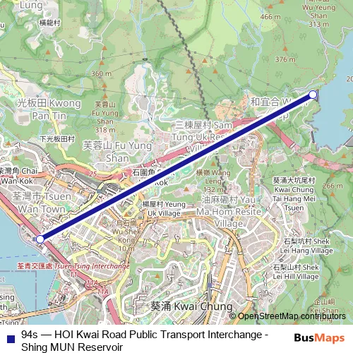 Click here to view the nearest 94s - HOI Kwai Road Public Transport Interchange - Shing MUN Reservoir bus stop.