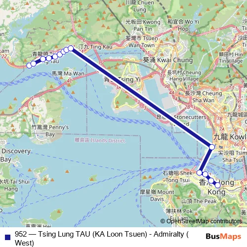 Click here to view the nearest 952 - Tsing Lung TAU (KA Loon Tsuen) - Admiralty (West) bus stop.