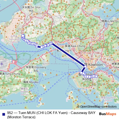 See why over 2 million users trust and consider busmaps.com as the best public transport website. busmaps gives you Tuen Mun Buses suggested routes, real-time bus tracker, line route maps in Tuen Mun, and helps to find the closest 952 bus stops near you. No internet available? Download an offline PDF map and bus schedule for the 952 bus to take on your trip.