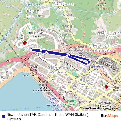 Bus 95a - Tsuen TAK Gardens - Tsuen WAN Station (Circular): Full Schedule in Tsuen Wan