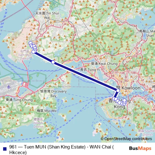 See why over 2 million users trust and consider busmaps.com as the best public transport website. busmaps gives you Tuen Mun Buses suggested routes, real-time bus tracker, line route maps in Tuen Mun, and helps to find the closest 961 bus stops near you. No internet available? Download an offline PDF map and bus schedule for the 961 bus to take on your trip.