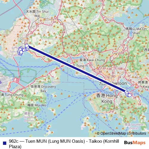Bus 962c - Tuen MUN (Lung MUN Oasis) - Taikoo (Kornhill Plaza) in Tuen Mun: Stops & Timetable
