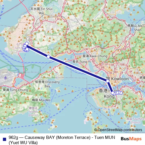 See why over 2 million users trust and consider busmaps.com as the best public transport website. busmaps gives you Tuen Mun Buses suggested routes, real-time bus tracker, line route maps in Tuen Mun, and helps to find the closest 962g bus stops near you. No internet available? Download an offline PDF map and bus schedule for the 962g bus to take on your trip.