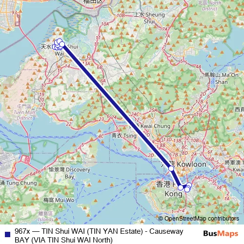 Click here to view the nearest 967x - TIN Shui WAI (TIN YAN Estate) - Causeway BAY (VIA TIN Shui WAI North) bus stop.