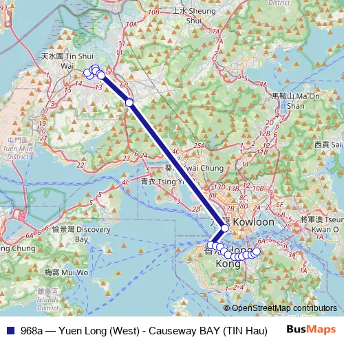 See why over 2 million users trust and consider busmaps.com as the best public transport website. busmaps gives you Yuen Long Buses suggested routes, real-time bus tracker, line route maps in Yuen Long, and helps to find the closest 968a bus stops near you. No internet available? Download an offline PDF map and bus schedule for the 968a bus to take on your trip.