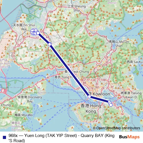Click here to view the nearest 968x - Yuen Long (TAK YIP Street) - Quarry BAY (King'S Road) bus stop.