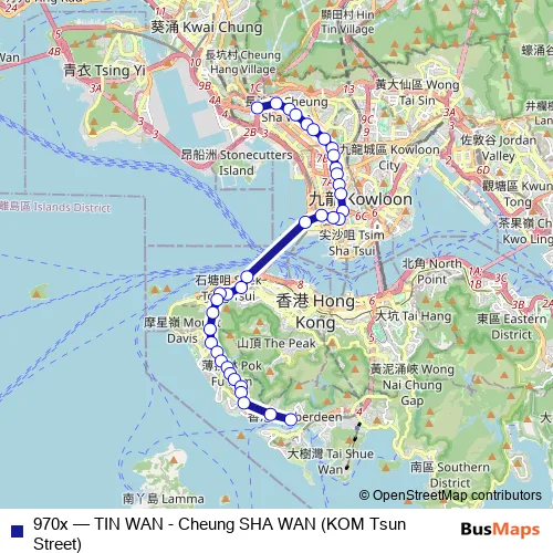 Aberdeen. 970x (TIN WAN - Cheung SHA WAN (KOM Tsun Street)) is operational during everyday.