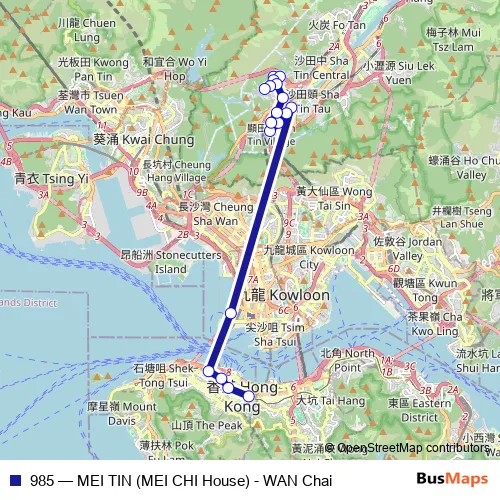 See why over 2 million users trust and consider busmaps.com as the best public transport website. busmaps gives you Sha Tin Buses suggested routes, real-time bus tracker, line route maps in Sha Tin, and helps to find the closest 985 bus stops near you. No internet available? Download an offline PDF map and bus schedule for the 985 bus to take on your trip.