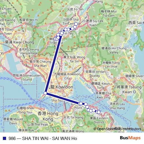 See why over 2 million users trust and consider busmaps.com as the best public transport website. busmaps gives you Sha Tin Buses suggested routes, real-time bus tracker, line route maps in Sha Tin, and helps to find the closest 986 bus stops near you. No internet available? Download an offline PDF map and bus schedule for the 986 bus to take on your trip.