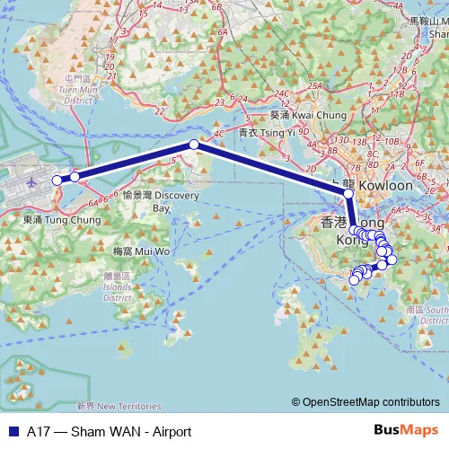 See why over 2 million users trust and consider busmaps.com as the best public transport website. busmaps gives you Hong Kong Buses suggested routes, real-time bus tracker, line route maps in Hong Kong, and helps to find the closest A17 bus stops near you. No internet available? Download an offline PDF map and bus schedule for the A17 bus to take on your trip.