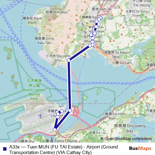 See why over 2 million users trust and consider busmaps.com as the best public transport website. busmaps gives you Tuen Mun Buses suggested routes, real-time bus tracker, line route maps in Tuen Mun, and helps to find the closest A33x bus stops near you. No internet available? Download an offline PDF map and bus schedule for the A33x bus to take on your trip.