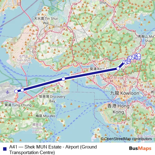 See why over 2 million users trust and consider busmaps.com as the best public transport website. busmaps gives you Sha Tin Buses suggested routes, real-time bus tracker, line route maps in Sha Tin, and helps to find the closest A41 bus stops near you. No internet available? Download an offline PDF map and bus schedule for the A41 bus to take on your trip.