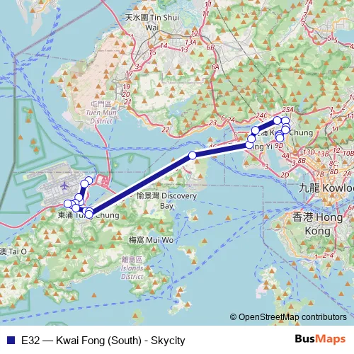 See why over 2 million users trust and consider busmaps.com as the best public transport website. busmaps gives you Tsuen Wan Buses suggested routes, real-time bus tracker, line route maps in Tsuen Wan, and helps to find the closest E32 bus stops near you. No internet available? Download an offline PDF map and bus schedule for the E32 bus to take on your trip.
