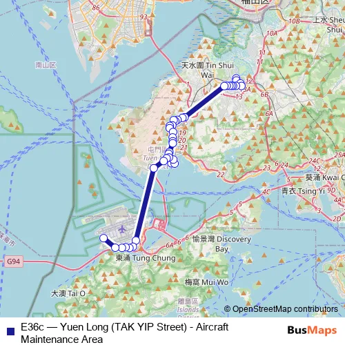 Bus E36c - Yuen Long (TAK YIP Street) - Aircraft Maintenance Area: Full Schedule in Tuen Mun