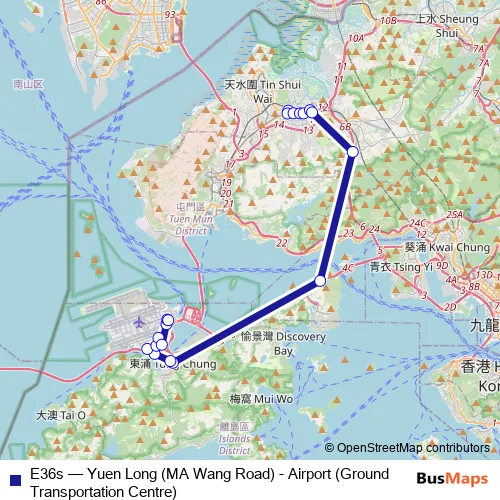 Click here to view the nearest E36s - Yuen Long (MA Wang Road) - Airport (Ground Transportation Centre) bus stop.