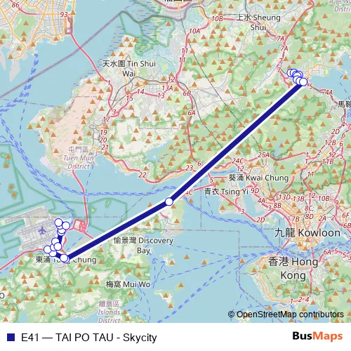 See why over 2 million users trust and consider busmaps.com as the best public transport website. busmaps gives you Tuen Mun Buses suggested routes, real-time bus tracker, line route maps in Tuen Mun, and helps to find the closest E41 bus stops near you. No internet available? Download an offline PDF map and bus schedule for the E41 bus to take on your trip.