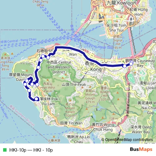 The first stop of the HKI-10p bus route is Jaffe Road, near Siu On Plaza and the last stop is Cyberport Bus Terminus. HKI-10p (HKI - 10p) is operational during on weekdays.