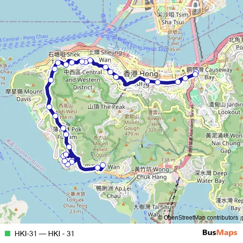 The first stop of the HKI-31 bus route is Jaffe Road, near Siu On Plaza and the last stop is Tin Wan Estate Minibus Terminus. HKI-31 (HKI - 31) is operational during on weekdays.