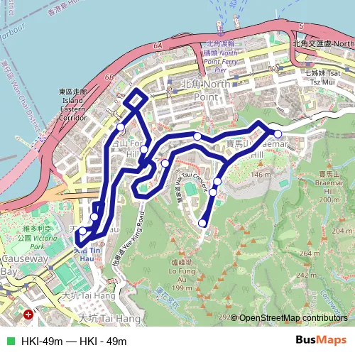 The first stop of the HKI-49m bus route is Tin Hau Station Public Transport Interchange and the last stop is Tin Hau Station Public Transport Interchange. HKI-49m (HKI - 49m) is operational during everyday.