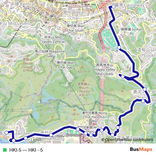 See why over 2 million users trust and consider busmaps.com as the best public transport website. busmaps gives you Hong Kong Buses suggested routes, real-time bus tracker, line route maps in Hong Kong, and helps to find the closest HKI-5 bus stops near you. No internet available? Download an offline PDF map and bus schedule for the HKI-5 bus to take on your trip.