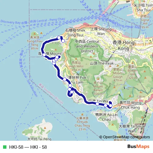 The first stop of the HKI-58 bus route is Wu Nam Street, outside On Tai Building and the last stop is Kennedy Town Station. HKI-58 (HKI - 58) is operational during on weekdays.