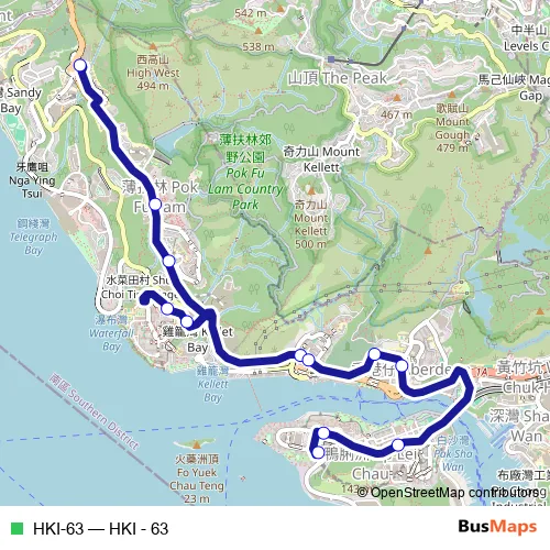 The first stop of the HKI-63 bus route is Queen Mary Hospital and the last stop is South Horizons Bus Terminus. HKI-63 (HKI - 63) is operational during on weekdays.