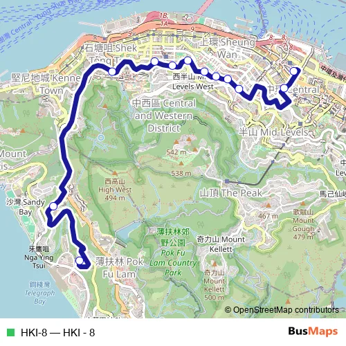 The first stop of the HKI-8 bus route is Baguio Villas (Lower) Minibus Terminus and the last stop is Central (Exchange Square). HKI-8 (HKI - 8) is operational during on weekdays.