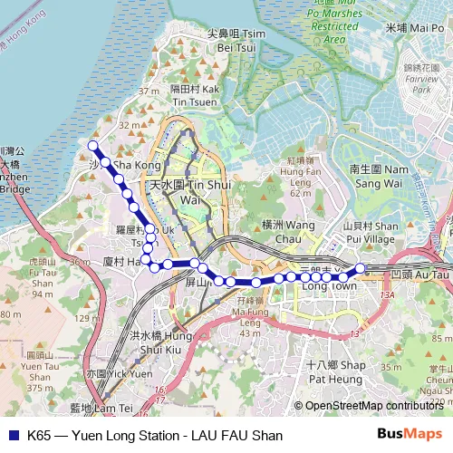 Bus K65 - Yuen Long Station - LAU FAU Shan: Full Schedule in Yuen Long