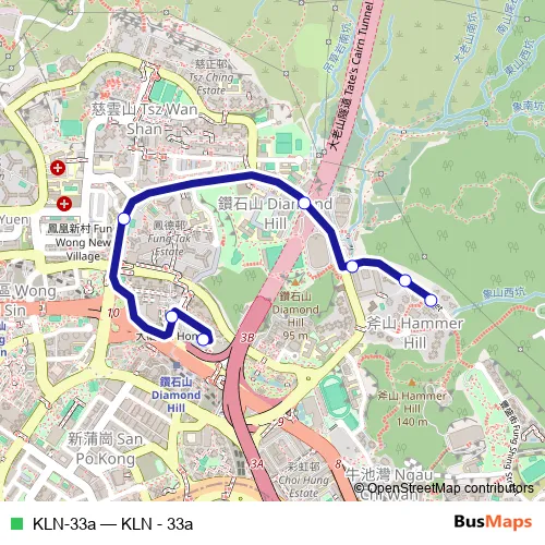 The first stop of the KLN-33a bus route is Fung Shing Street, outside Hill Top Gardens and the last stop is Diamond Hill Station Public Transport Interchange. KLN-33a (KLN - 33a) is operational during everyday.