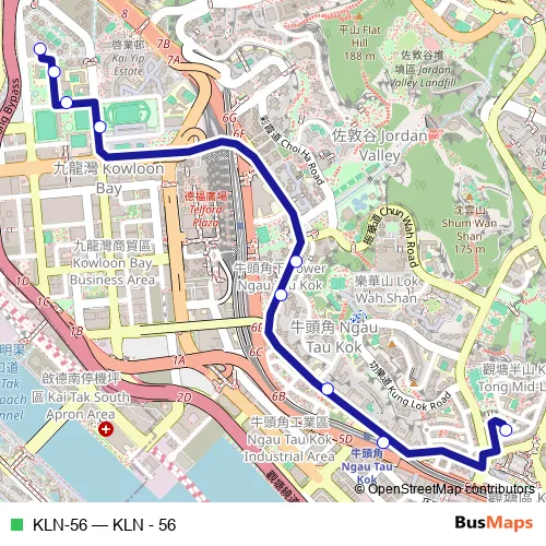 The first stop of the KLN-56 bus route is Richland Gardens Minibus Terminus and the last stop is Shung Yan Street, outside Nam Wah Mansion. KLN-56 (KLN - 56) is operational during everyday.
