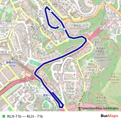 The first stop of the KLN-71b bus route is Lei Yue Mun Road outside Lam Tin Public Transport Interchange and the last stop is Sau Fung Street, near Sau Chi House, Sau Mau Ping Estate. KLN-71b (KLN - 71b) is operational during everyday.