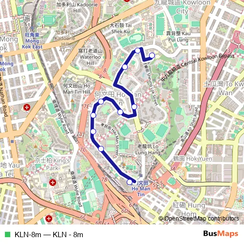 The first stop of the KLN-8m bus route is Sheung WO Street, near Chan Sui Ki (La Salle) College and the last stop is Chung HAU Street, near Ho Man Tin Station. KLN-8m (KLN - 8m) is operational during everyday.