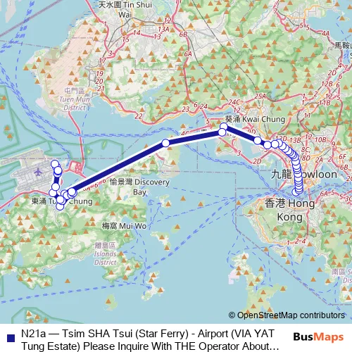 Click here to view the nearest N21a - Tsim SHA Tsui (Star Ferry) - Airport (VIA YAT Tung Estate) Please Inquire With THE Operator About THE Payment Arrangement OF THE TWO-WAY Fare ON This Route.) bus stop.