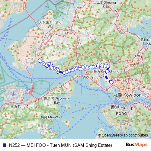 See why over 2 million users trust and consider busmaps.com as the best public transport website. busmaps gives you Tuen Mun Buses suggested routes, real-time bus tracker, line route maps in Tuen Mun, and helps to find the closest N252 bus stops near you. No internet available? Download an offline PDF map and bus schedule for the N252 bus to take on your trip.