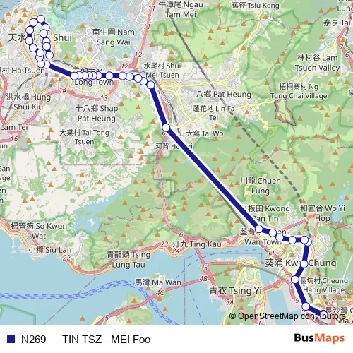 Bus N269 - TIN TSZ - MEI Foo in Yuen Long: Stops & Timetable